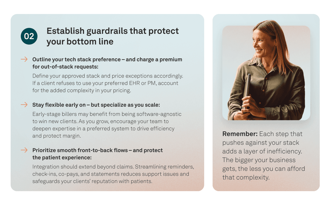 Billing companies face growing pressure to work inside multiple client systems — each with unique challenges. This guide shows you how to set guardrails, price for complexity, and automate key steps so more claims run hands free and cash moves faster.