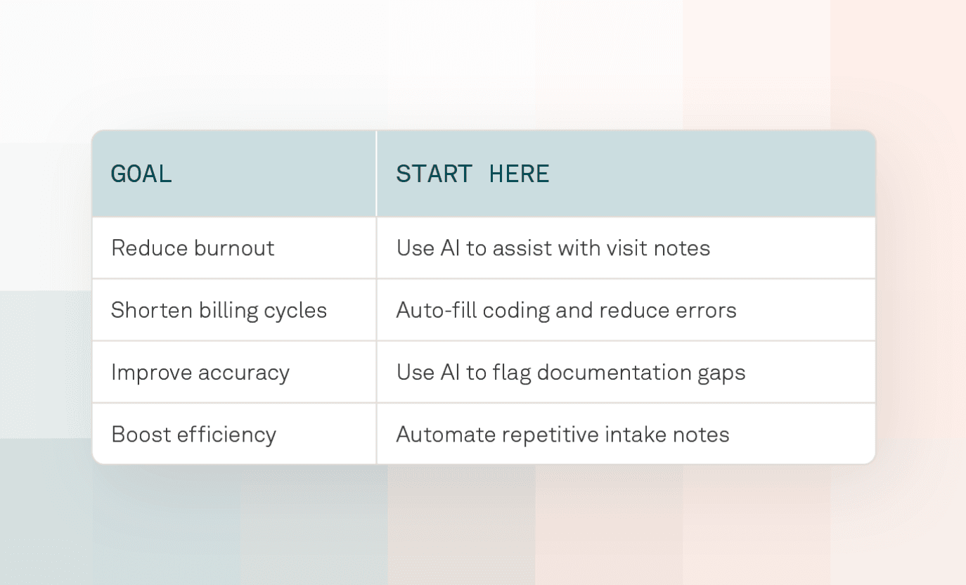 Get honest insights from 100+ independent providers on how they’re using AI for documentation, what’s working, what’s not, and how to take the first step without disrupting your workflow.