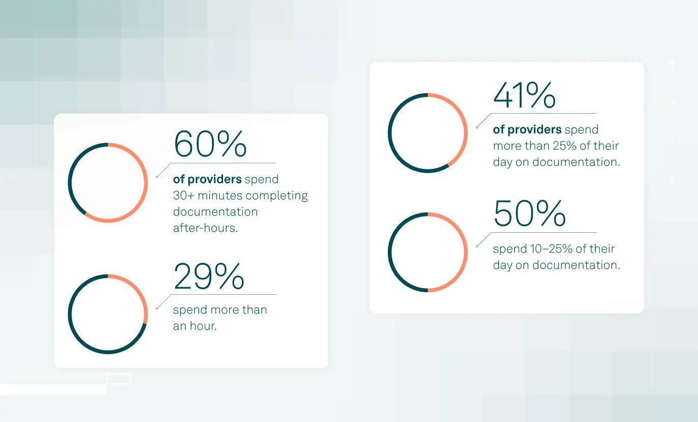 Manual documentation is a major time drain. In fact, 88% of providers say repetitive documentation tasks are their biggest time-waster.