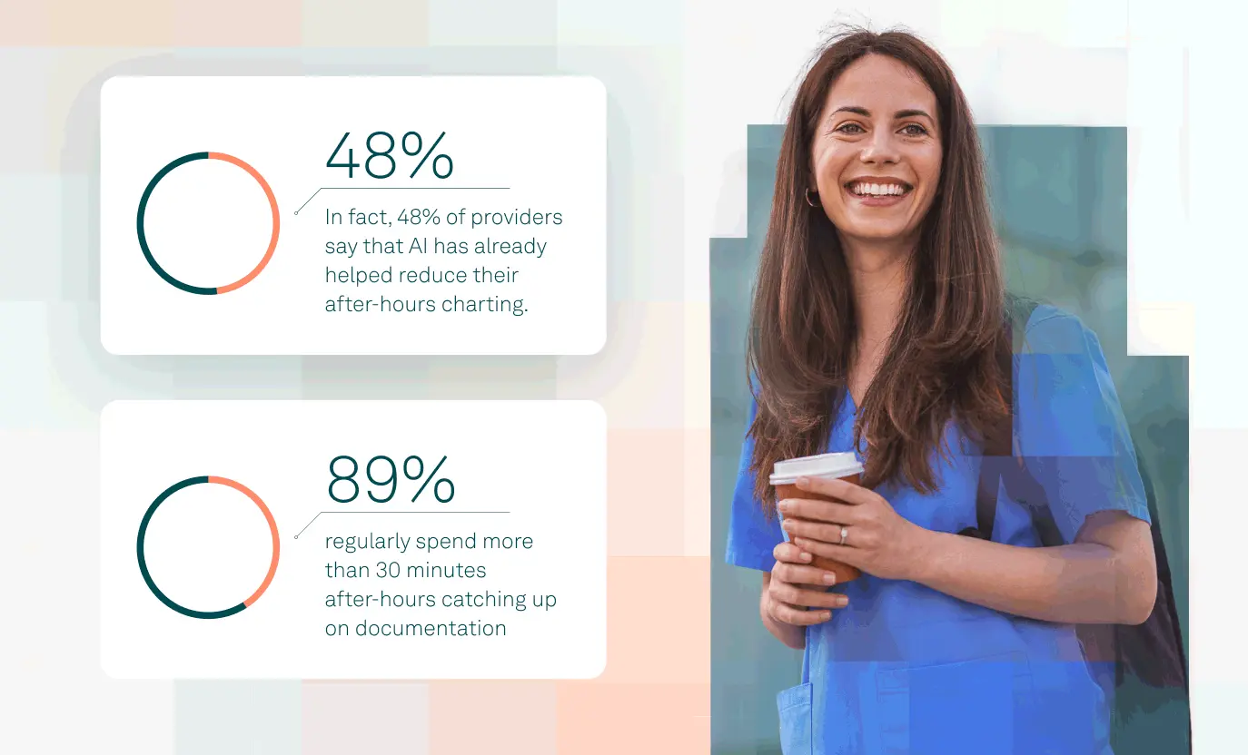 Even the best teams lose time to inefficient tools. 88% of providers say repetitive charting is their biggest time-waster, and nearly half spend over a quarter of their day just on notes.