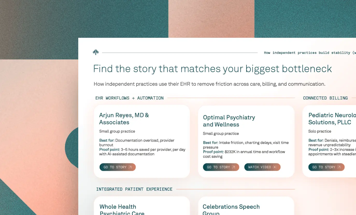 Drawing on insights from Tebra’s 2026 State of the Independent Practice Report, this case study collection shares five real practice stories. Each one shows what changes when clinical workflows, billing, and the patient experience are connected, so work doesn’t break between systems.