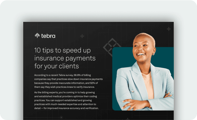 According to a recent Tebra survey, a staggering 56.9% of billing companies cite inaccurate information from practices as the primary bottleneck slowing down insurance payments, and 92% say they wish practices knew to verify insurance. But, as billing experts, you're the lifeline for these medical providers. Uncover 10 best practices to share with your practices — for improved insurance accuracy and verification.