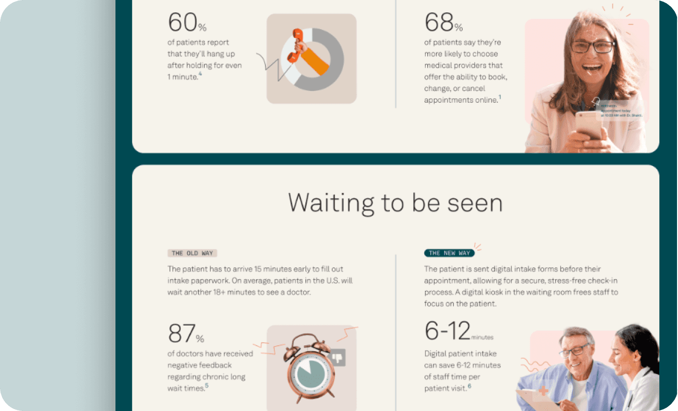 In our rapidly digitizing world, patients are demanding more. More convenience, more control, and more value from their healthcare experience. And 65% of patients are willing to switch providers if their preferences aren’t met. Modernizing your practice is about improving patient outcomes, boosting efficiency, and driving growth for your practice. Learn how to: