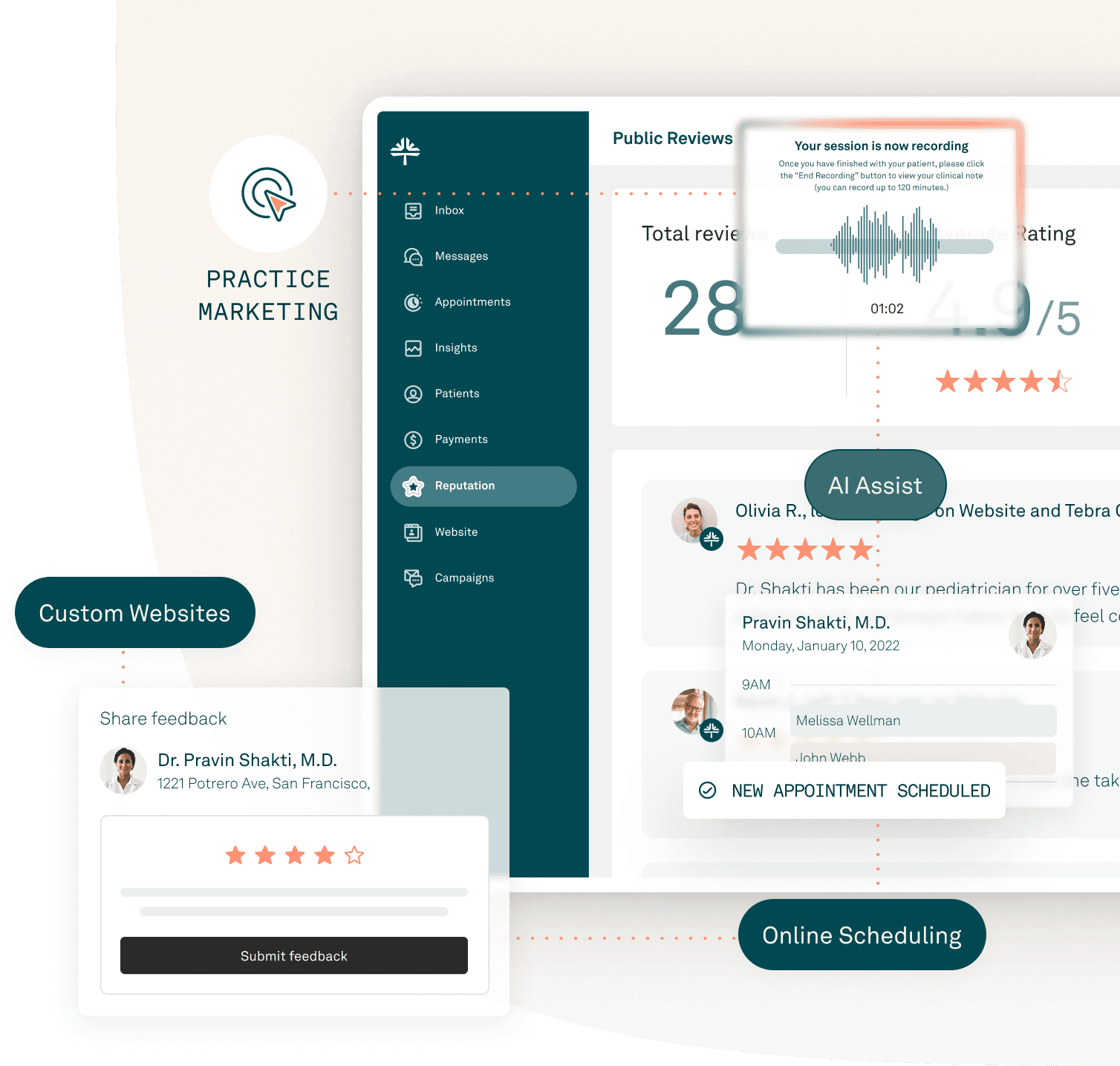 Better visibility. Better reviews. Better patient outcomes.Tebra helps your practice show up in local search, build patient trust with better reviews, and make online booking fast and easy.