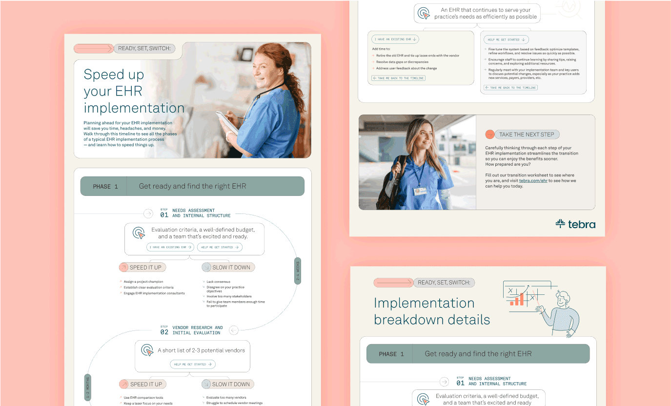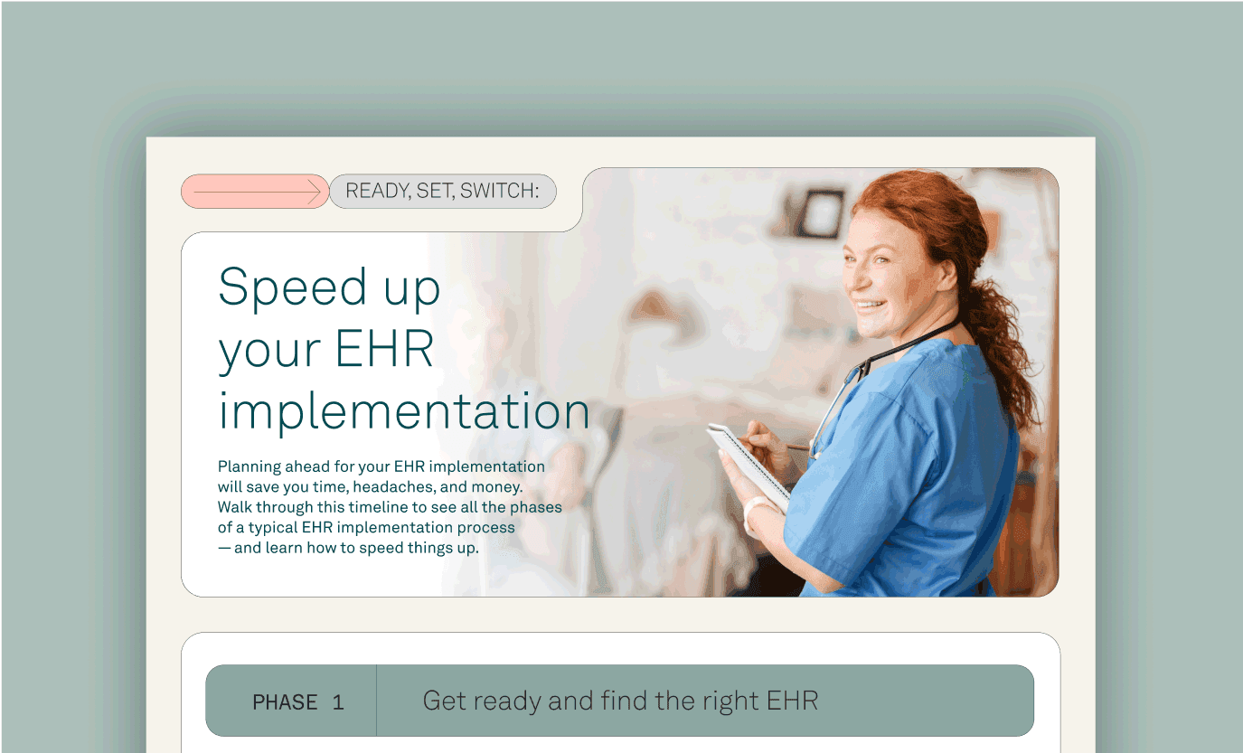 Planning to implement a new EHR? Whether you are switching systems or getting started for the first time, use this interactive timeline to build your roadmap and find the right transition pace to set your practice up for success.